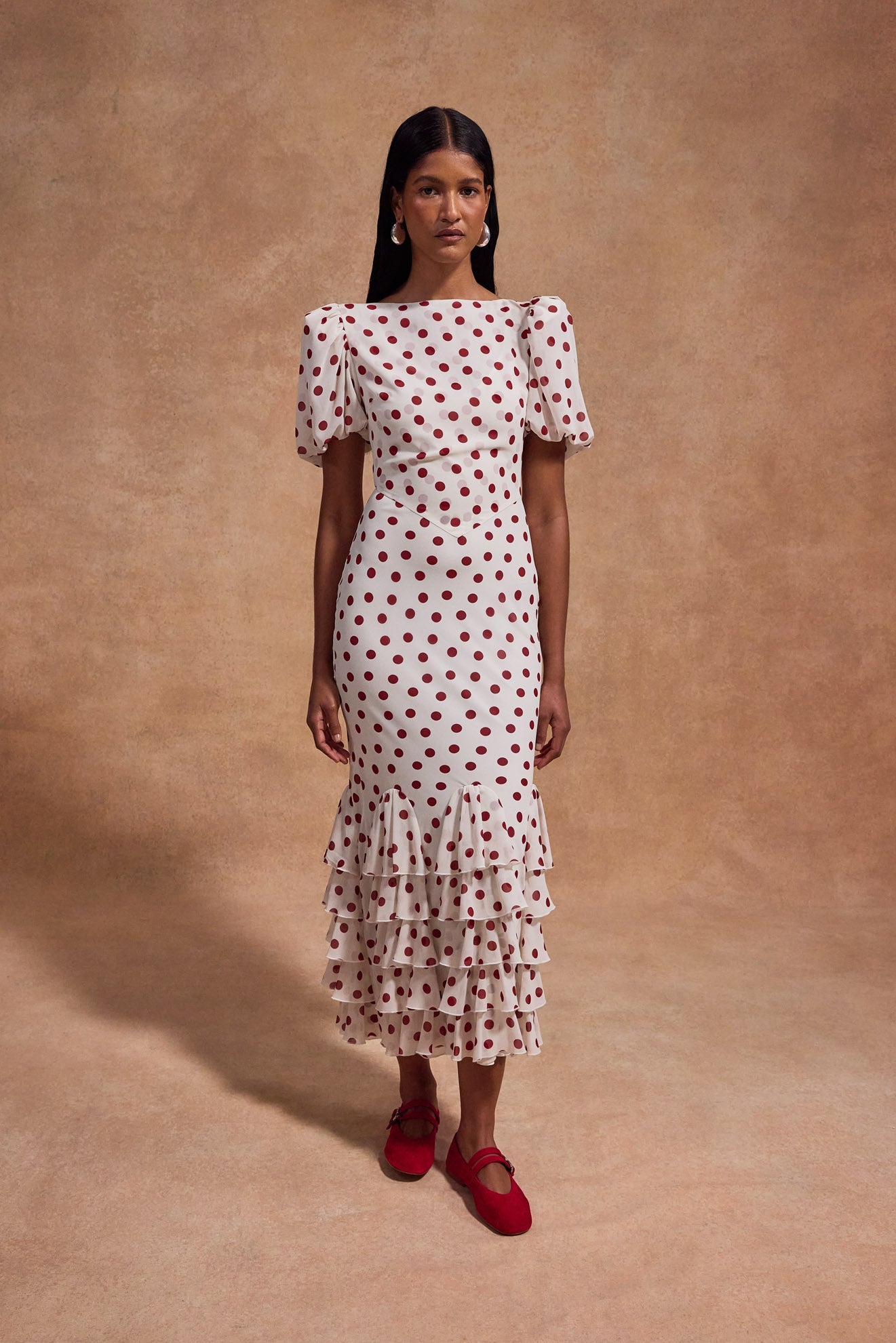 FORTALEZA MIDI DRESS IN IVORY RED POLKADOT CHIFFON