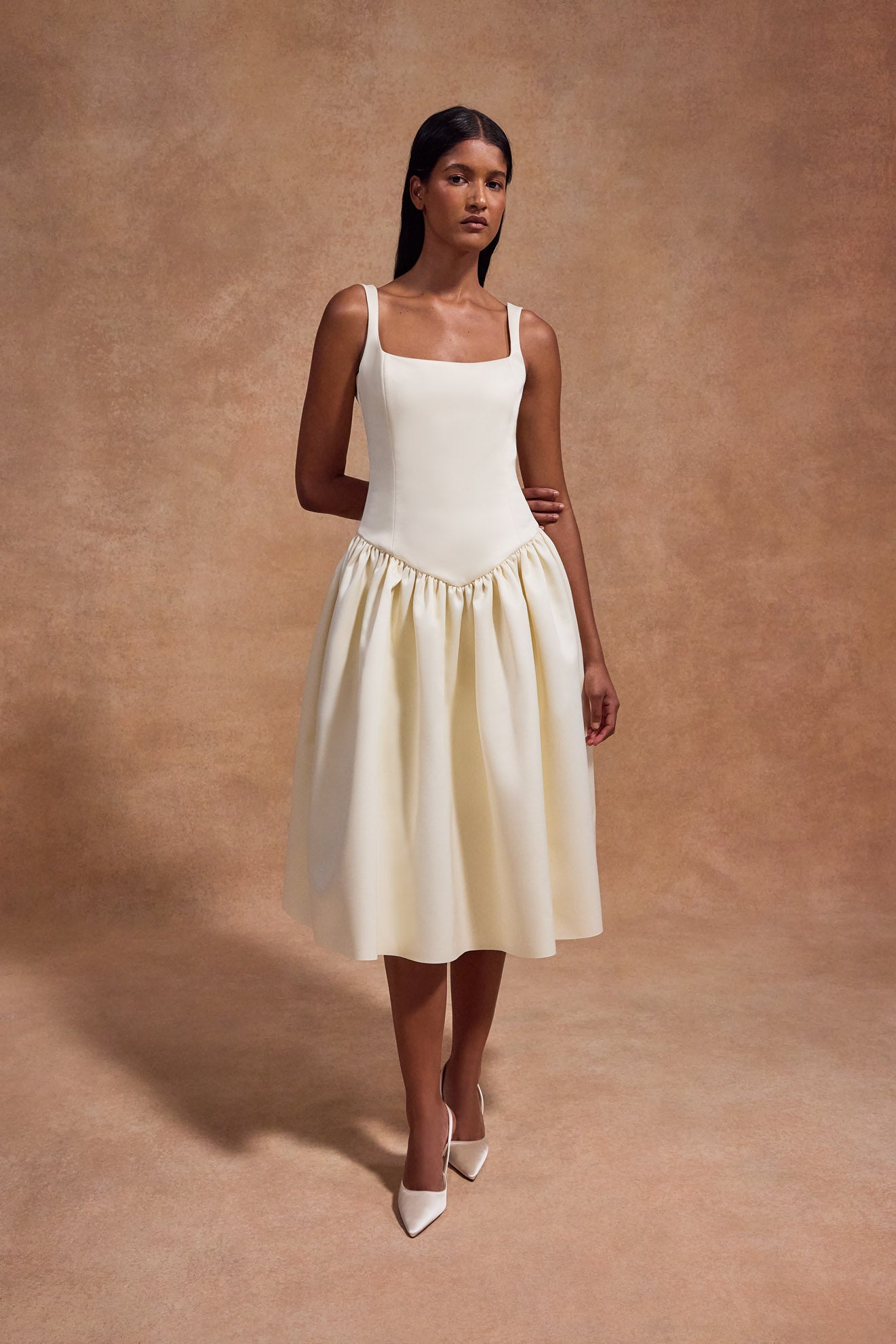 LOLA MIDI DRESS IN IVORY BONDED SATIN