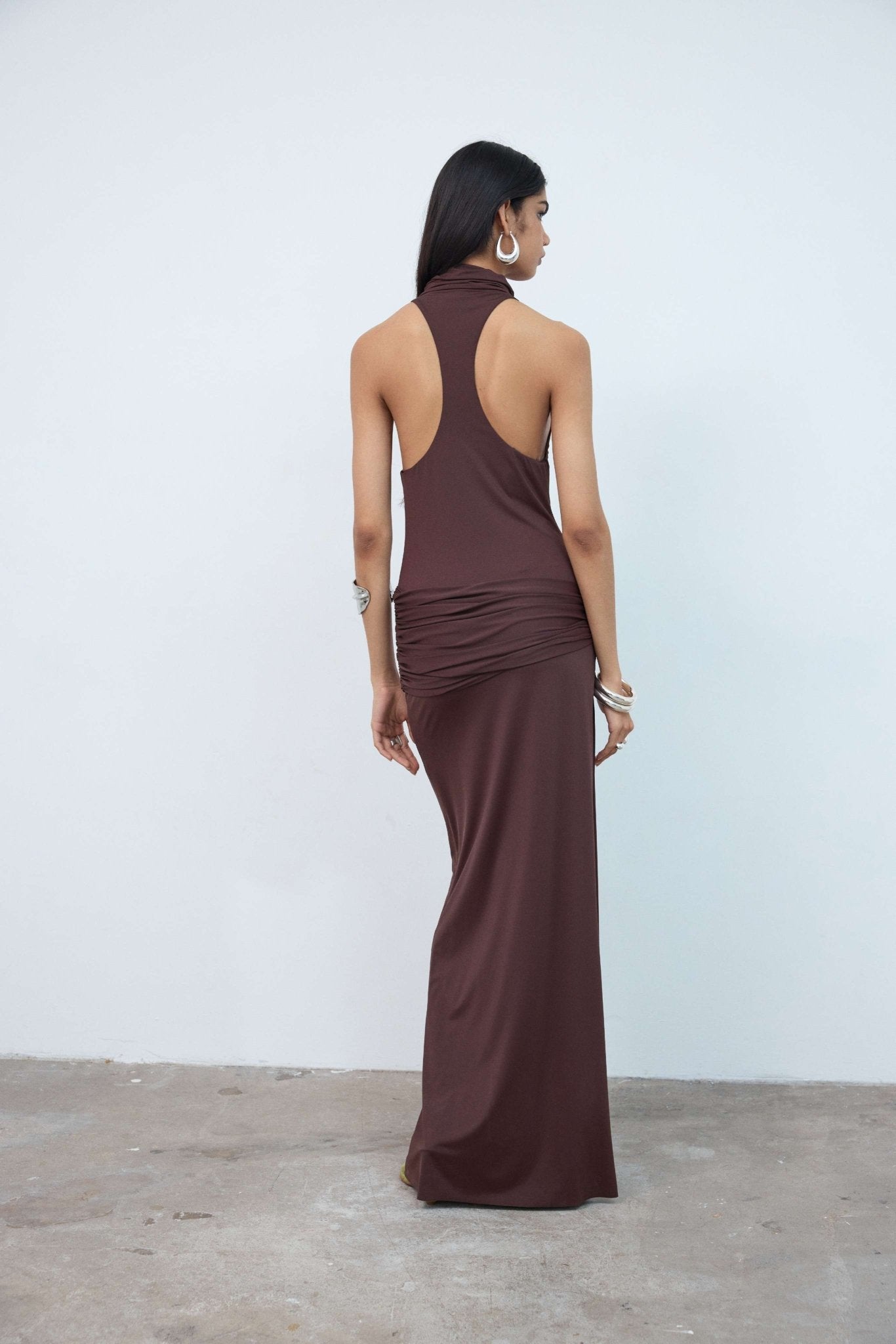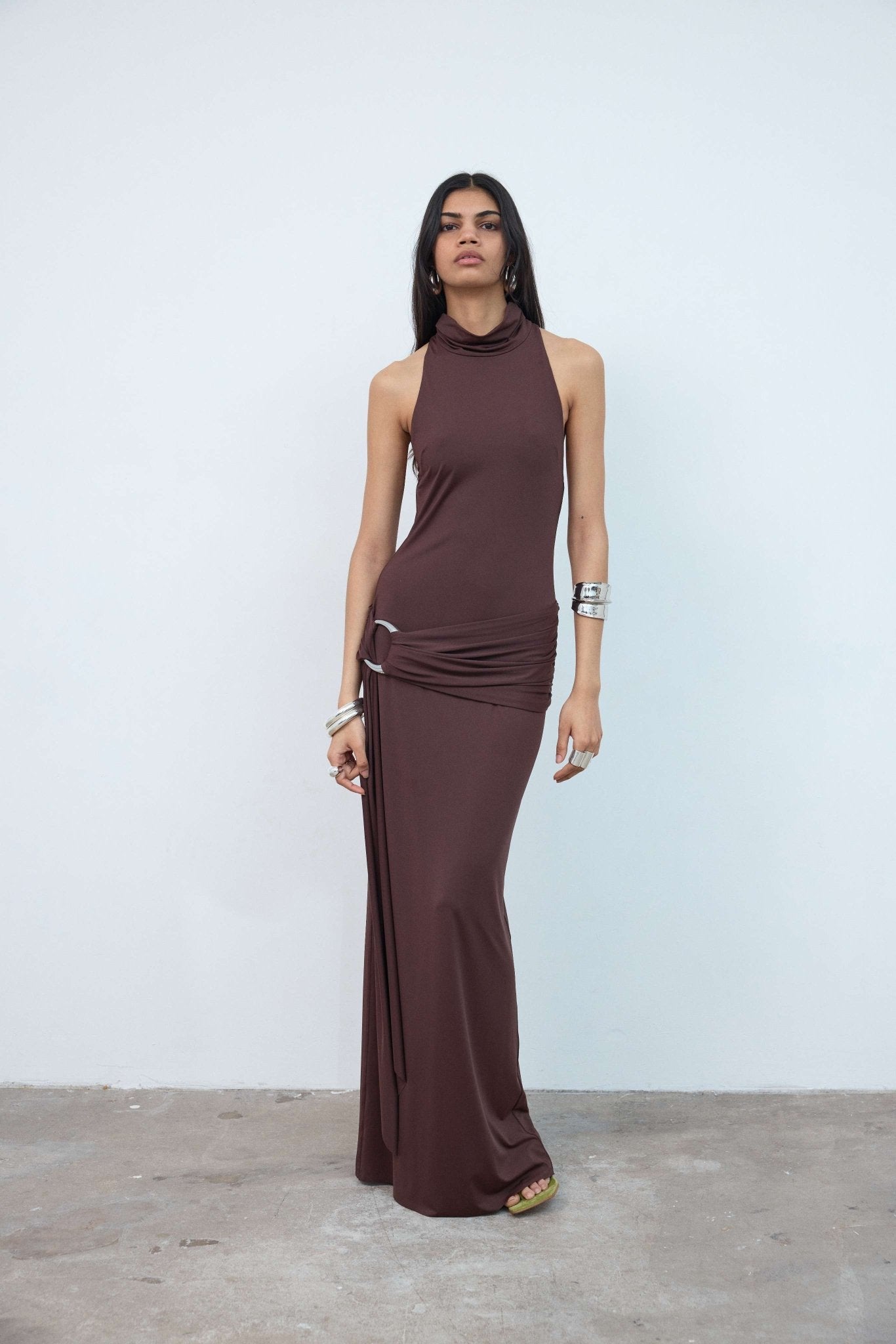 AIDANA MAXI DRESS IN BROWN SPANDEX JERSEY