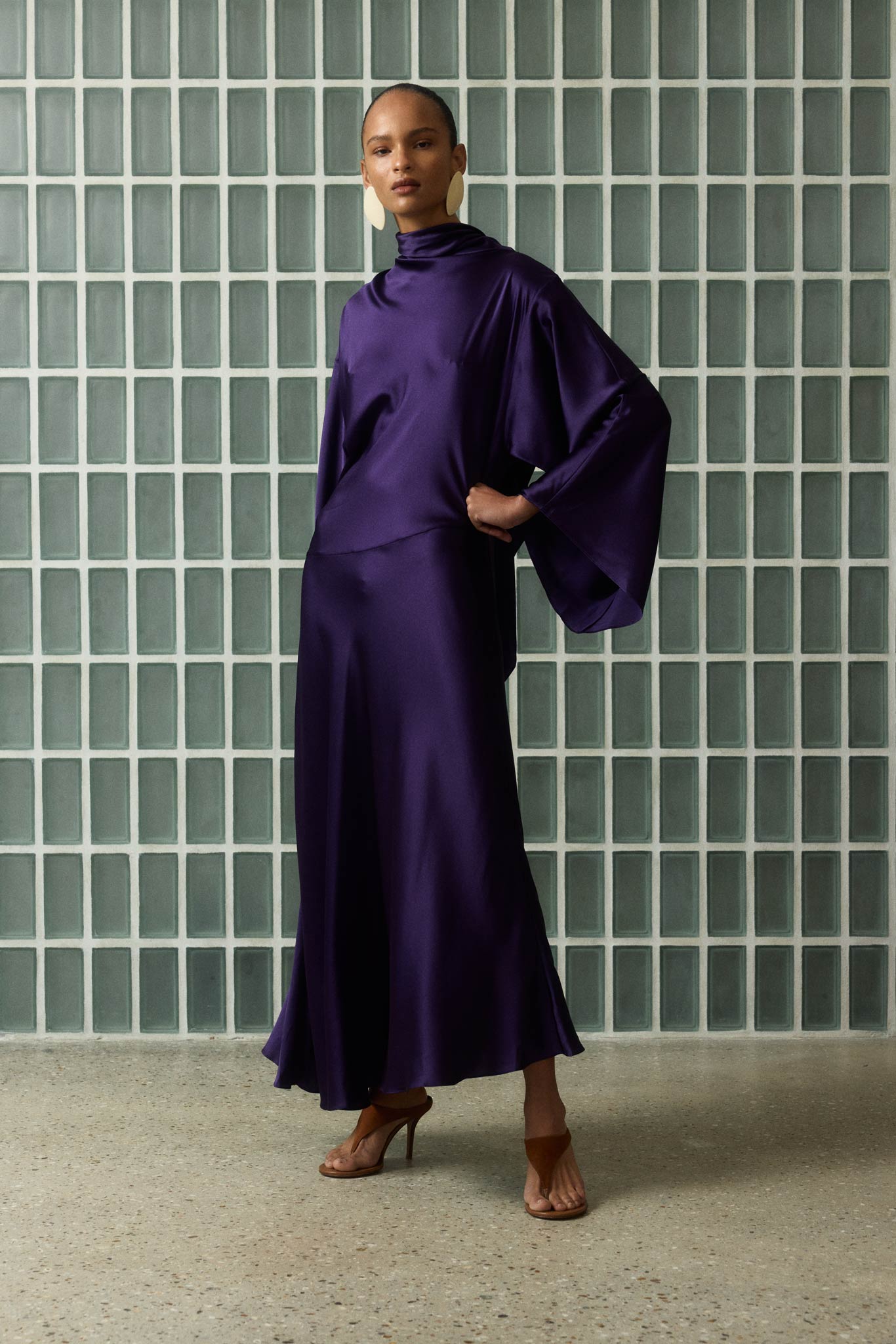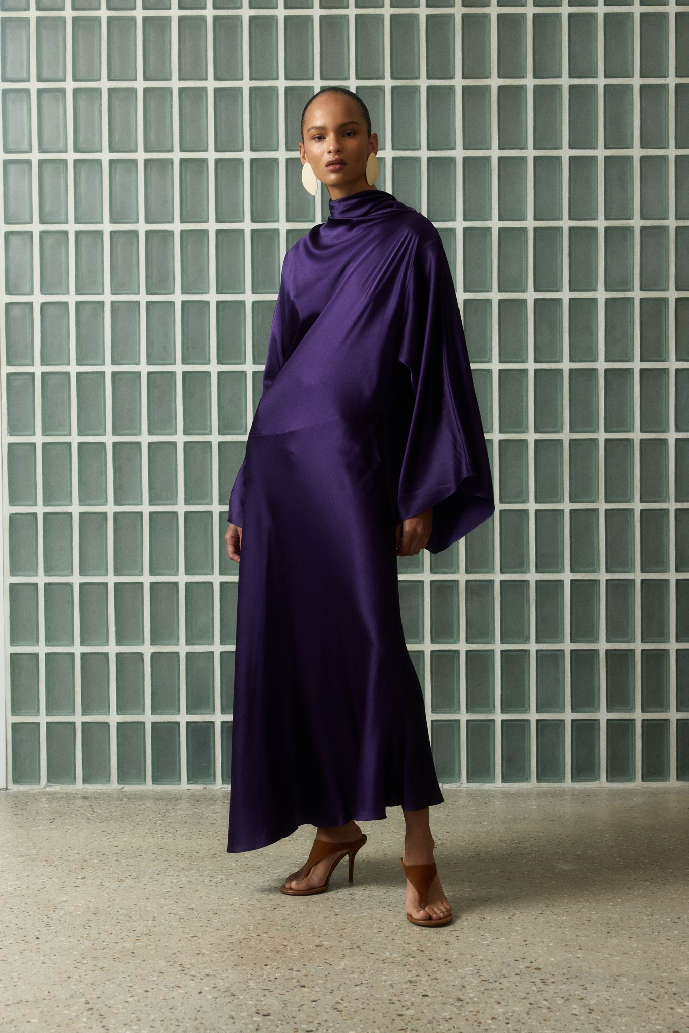 BAYAMO LONG DRESS IN PURPLE SILK SATIN