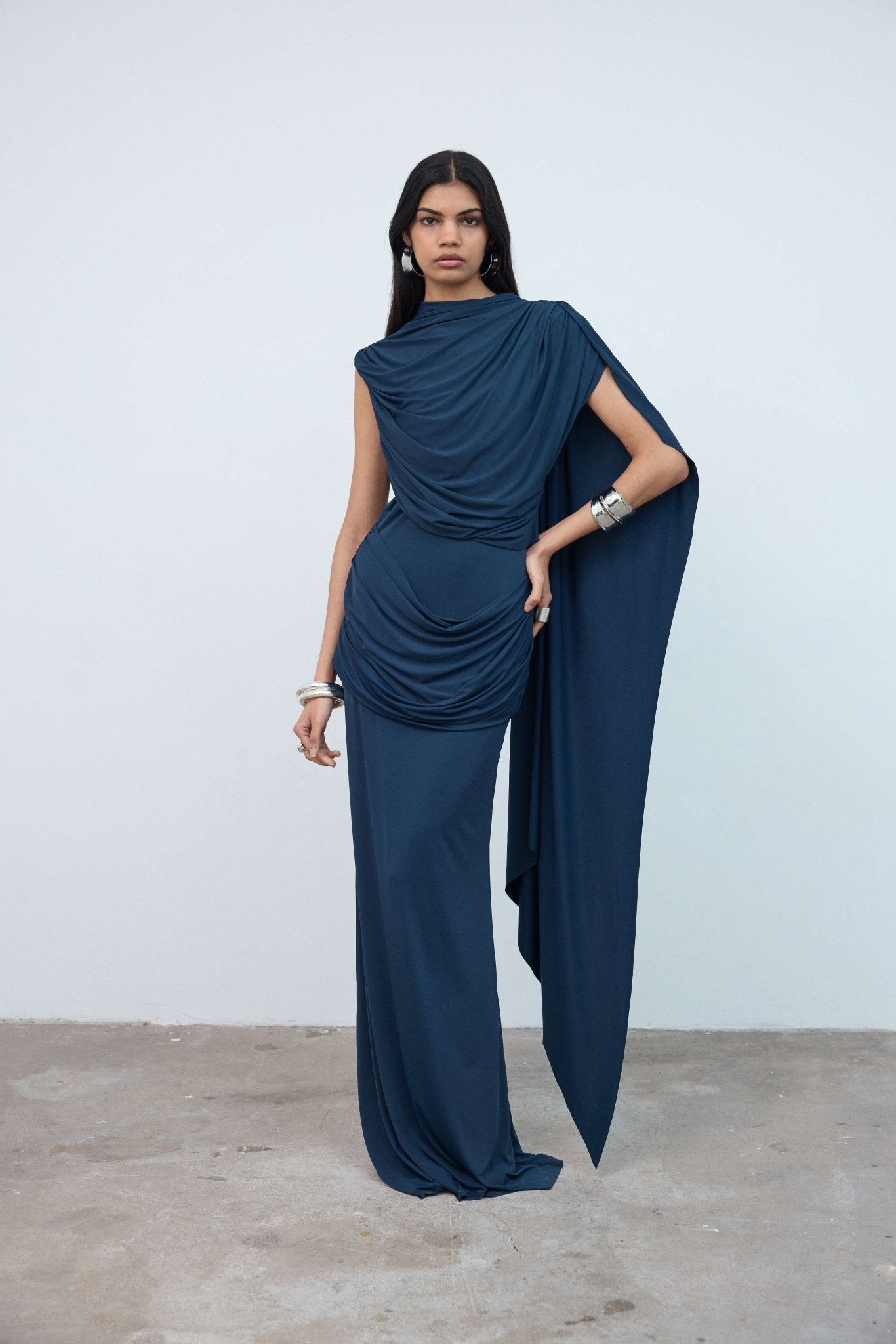 ELARA MAXI DRESS IN MIDNIGHT SPANDEX JERSEY