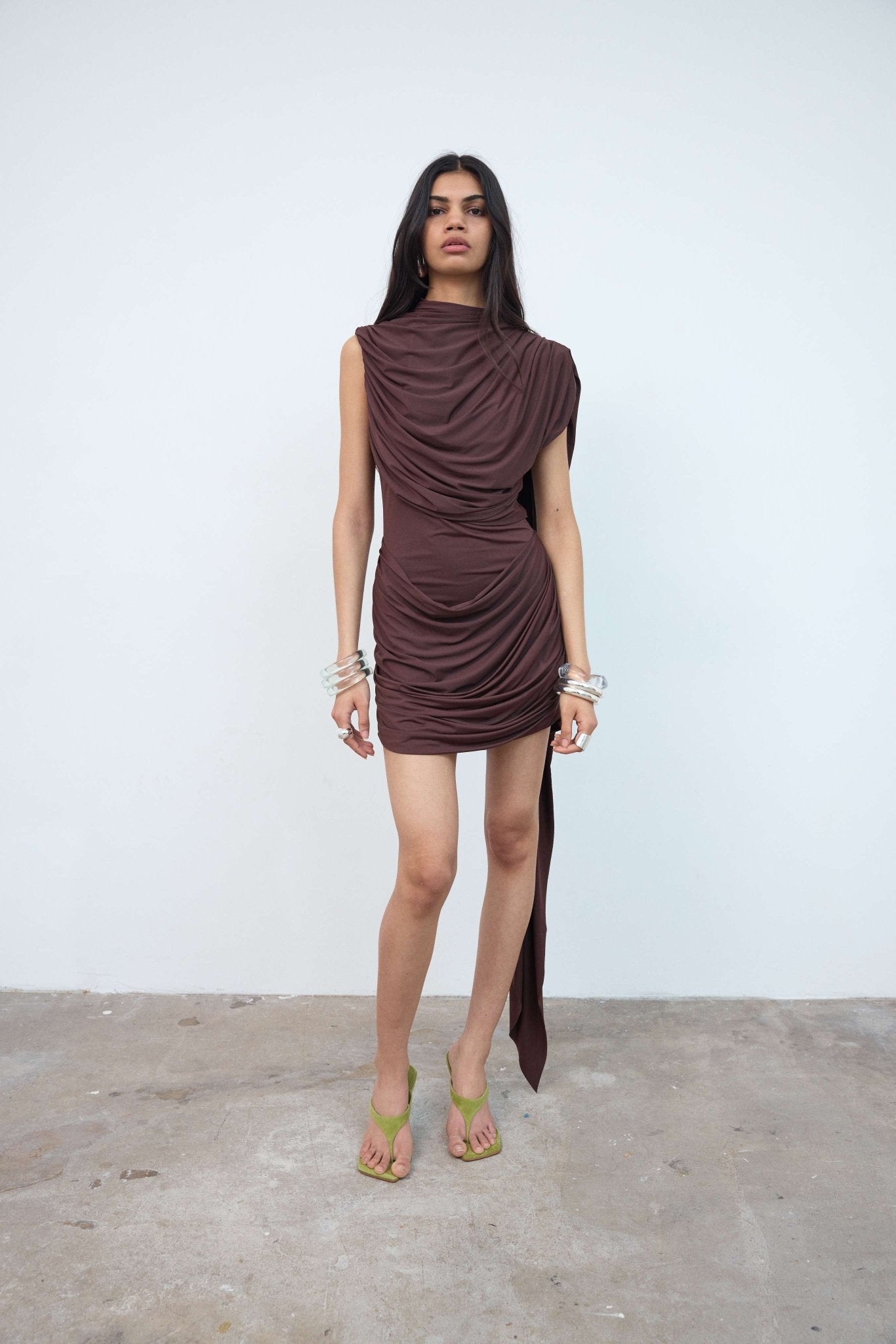 RAVENNA MINI DRESS IN CHOCOLATE BROWN JERSEY