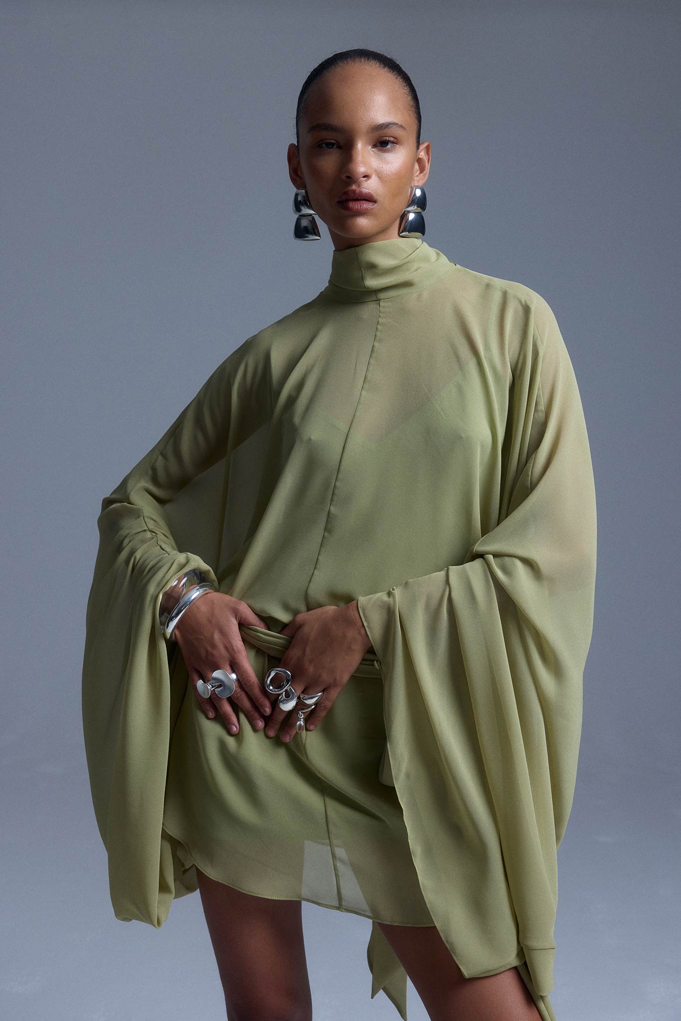 NILA MINI DRESS IN GREEN CHIFFON