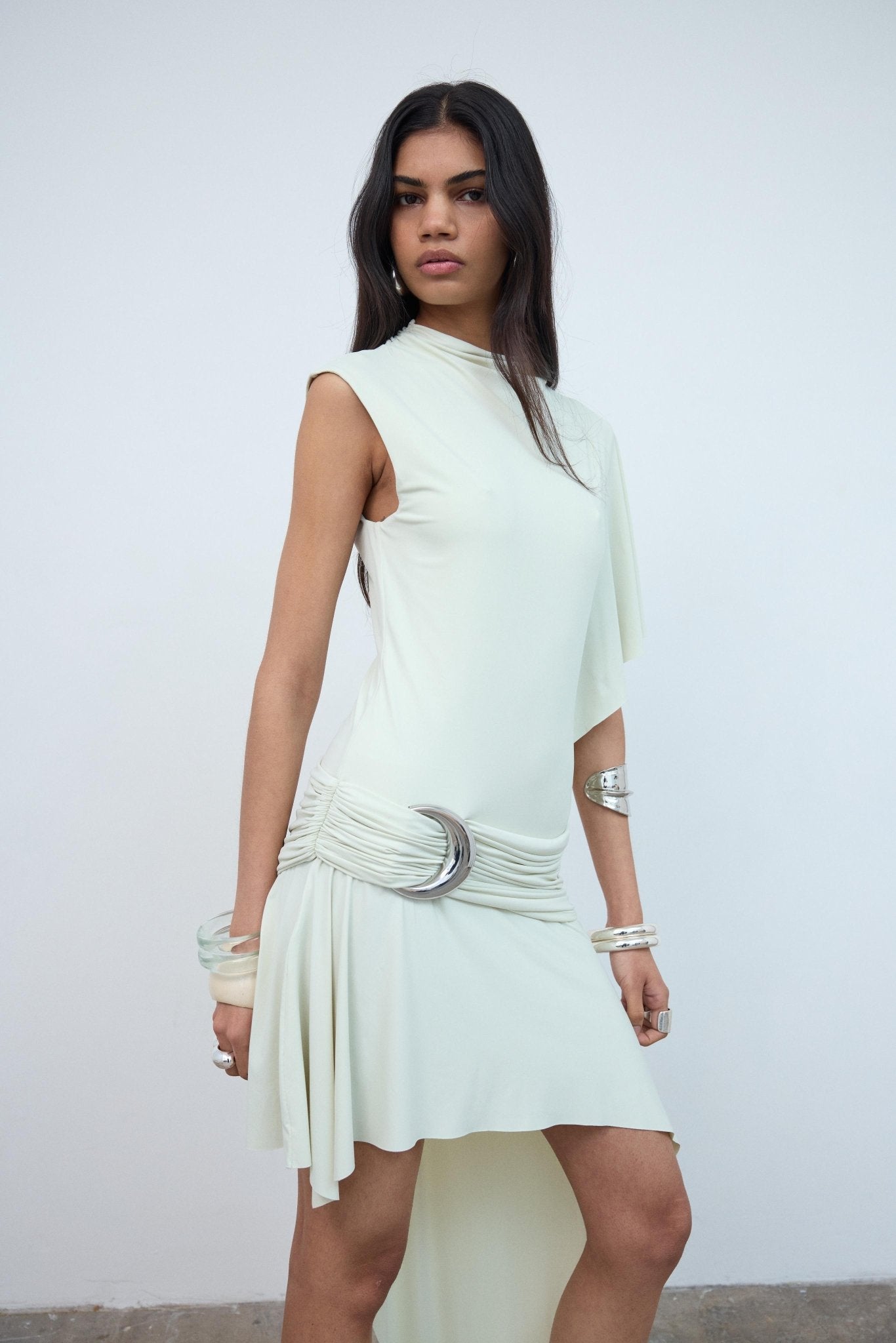 TITAN MINI DRESS IN CREAM SPANDEX JERSEY