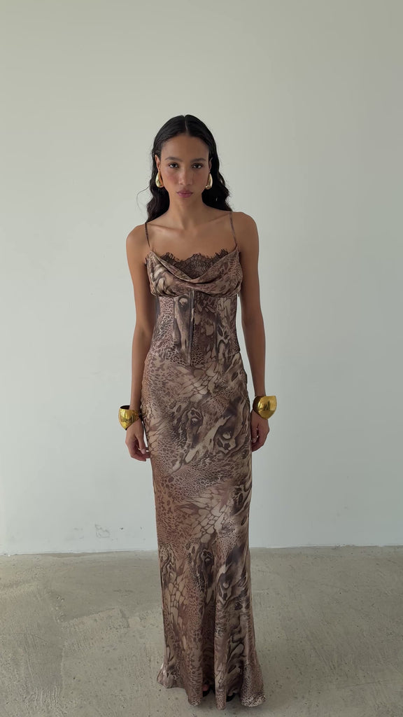 CLEODORA MAXI DRESS IN GUEPARDO SILK SATIN