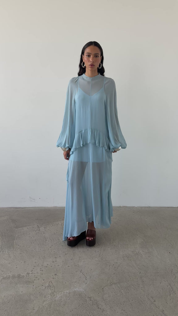 TERRAN MAXI DRESS IN SKY GEORGETTE CHIFFON