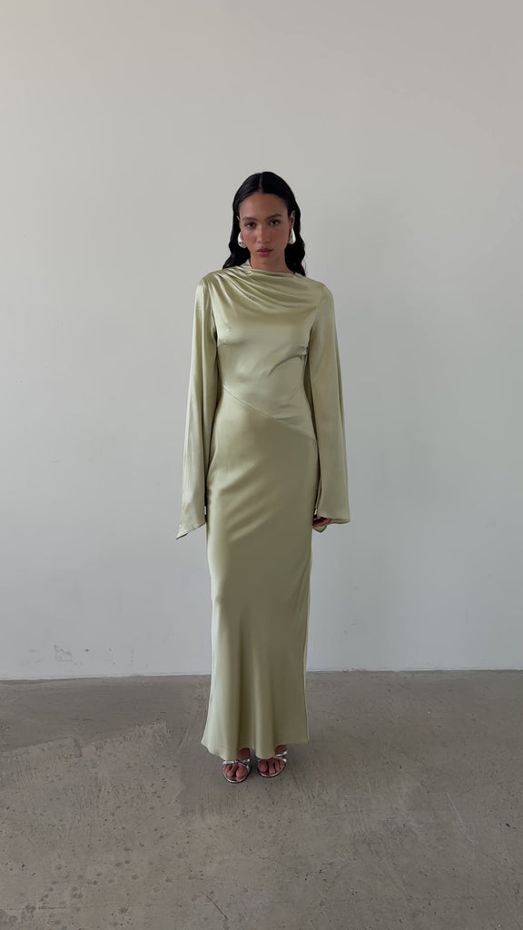 ONDAS MAXI DRESS IN SAND SILK SATIN