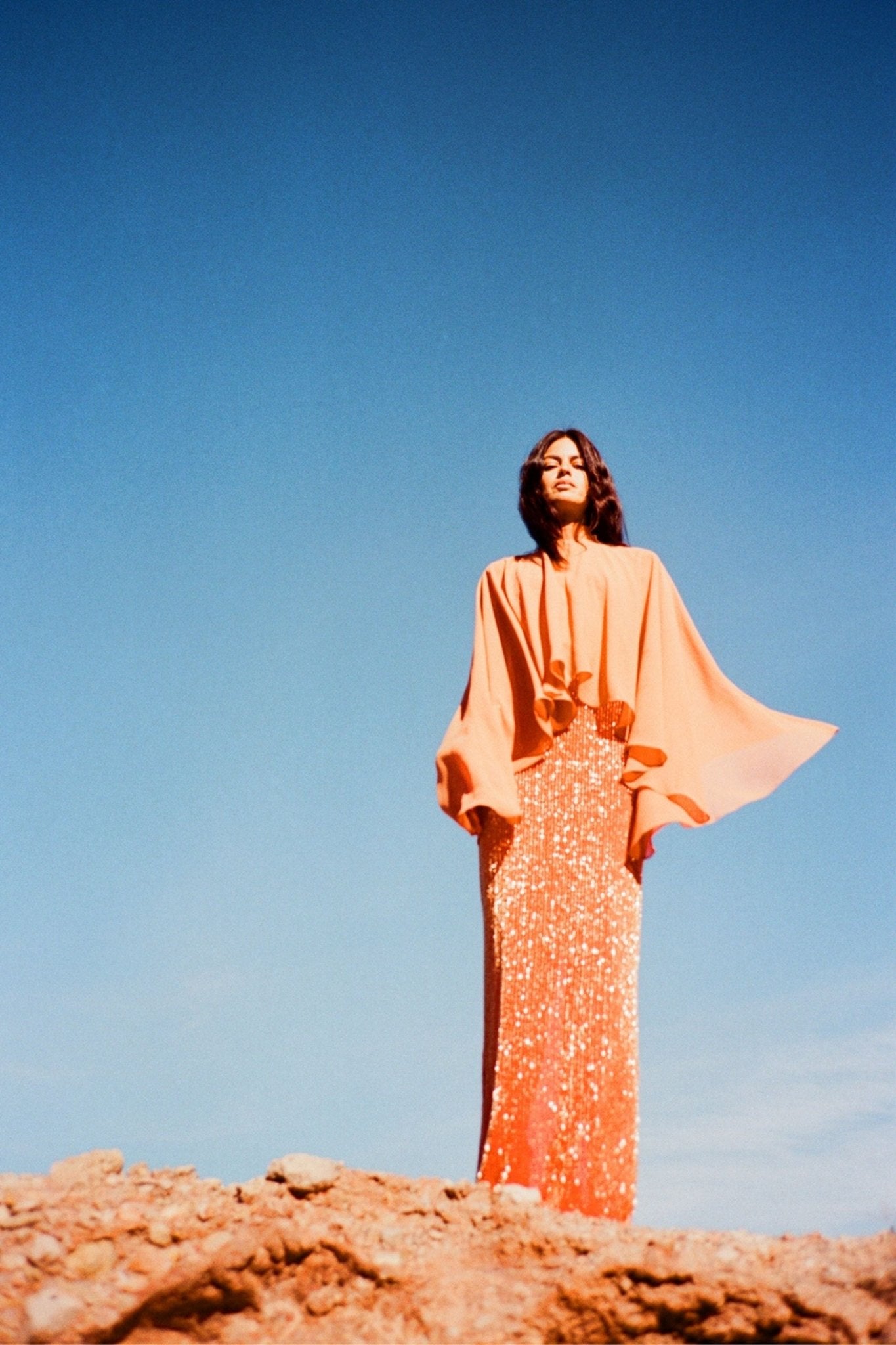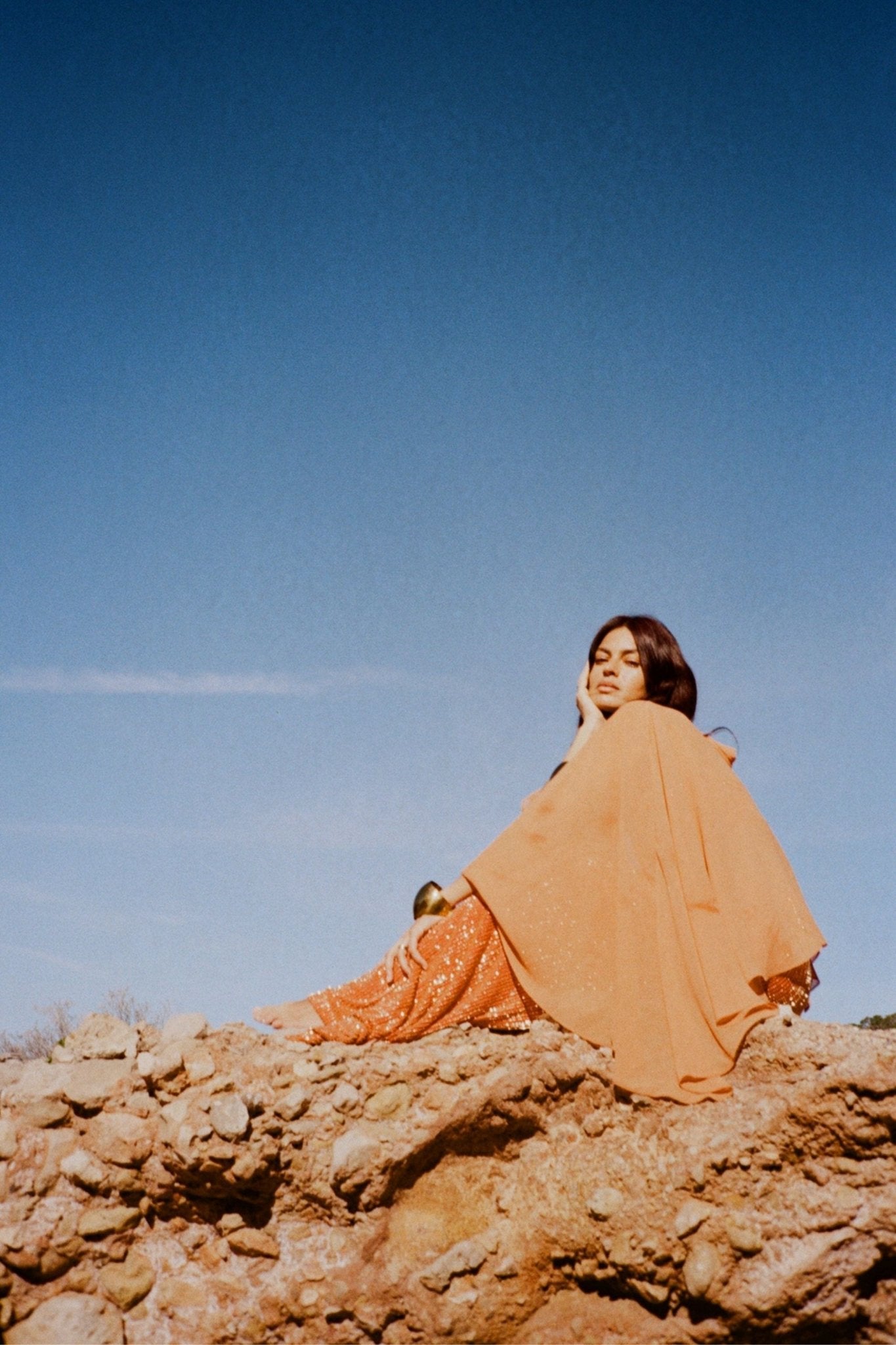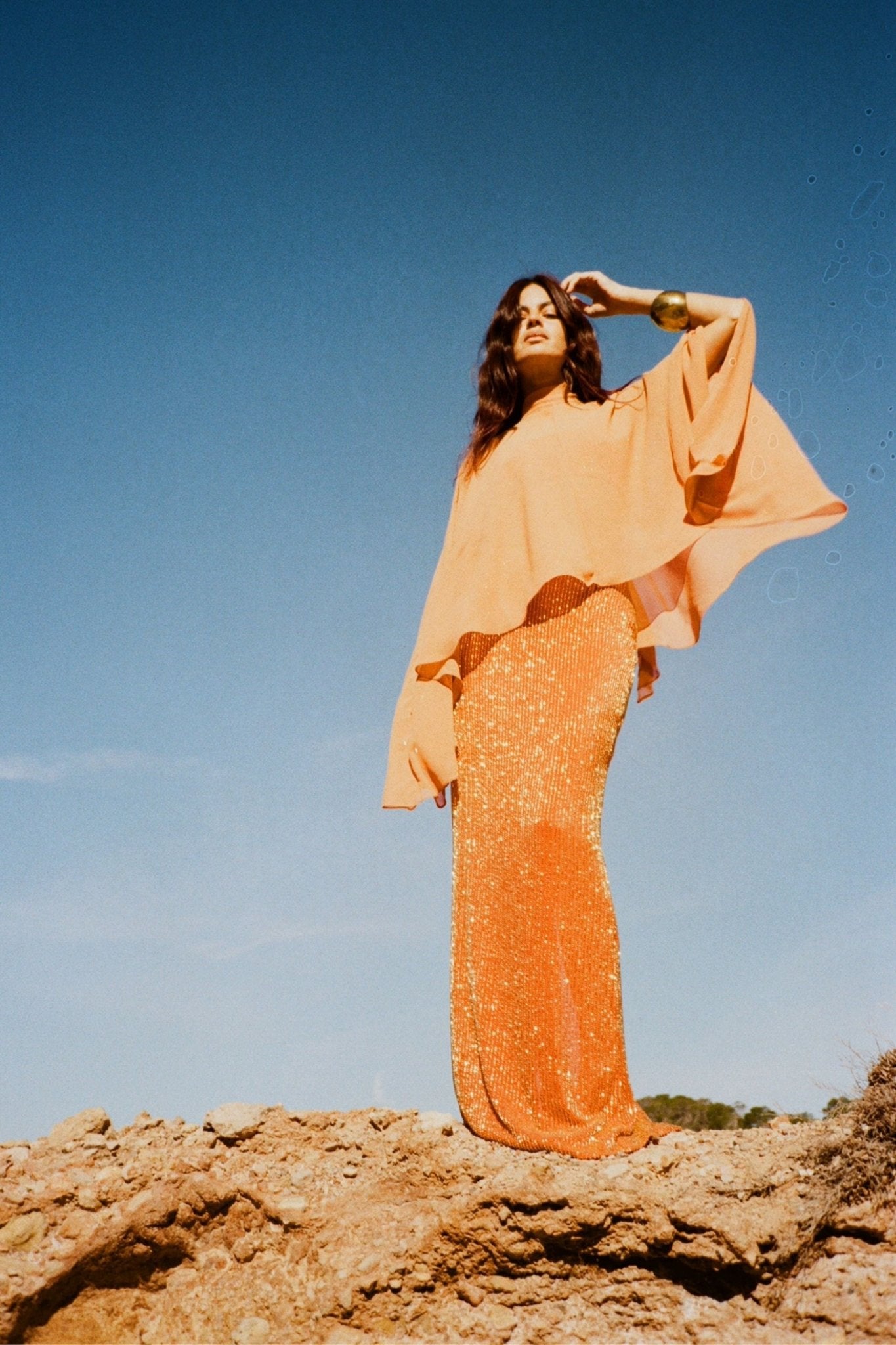 PALMA CAPE & TOP IN ORANGE BEADED MESH