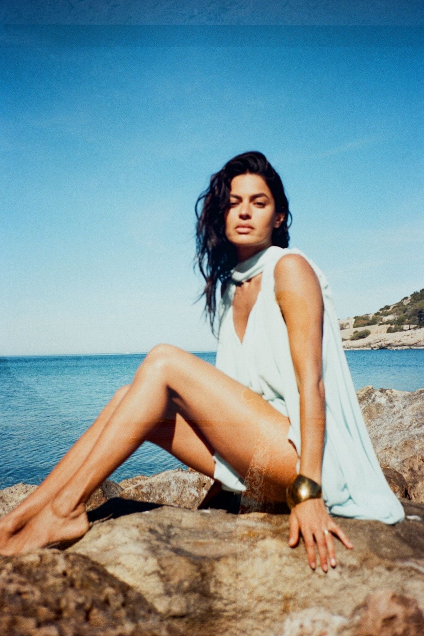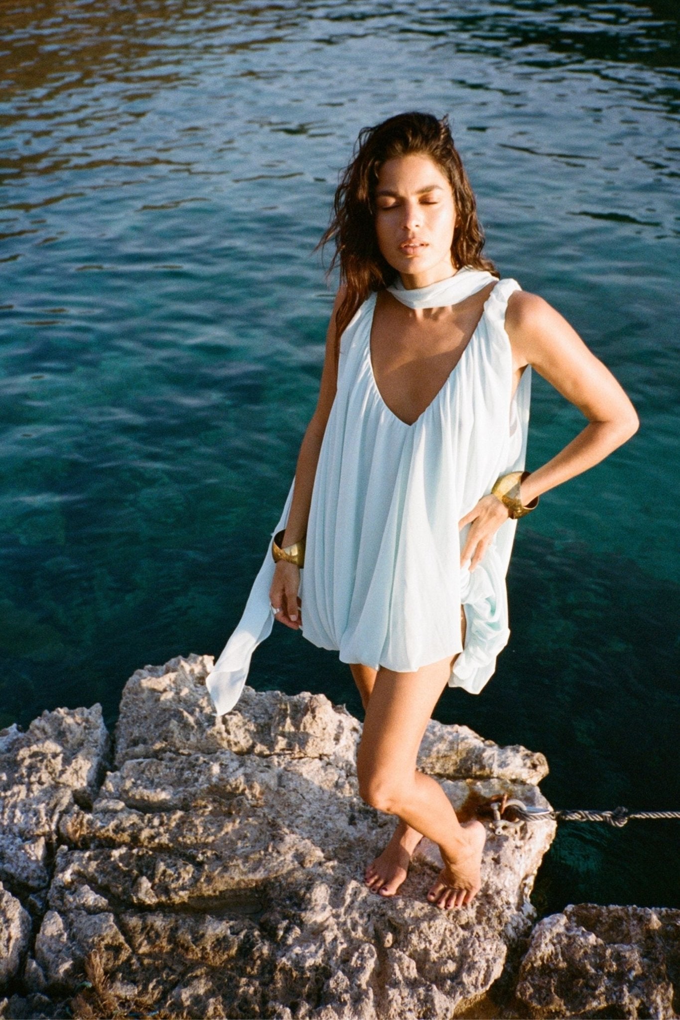 IBIZA MINI DRESS IN BLUE SEQUIN CROCHET